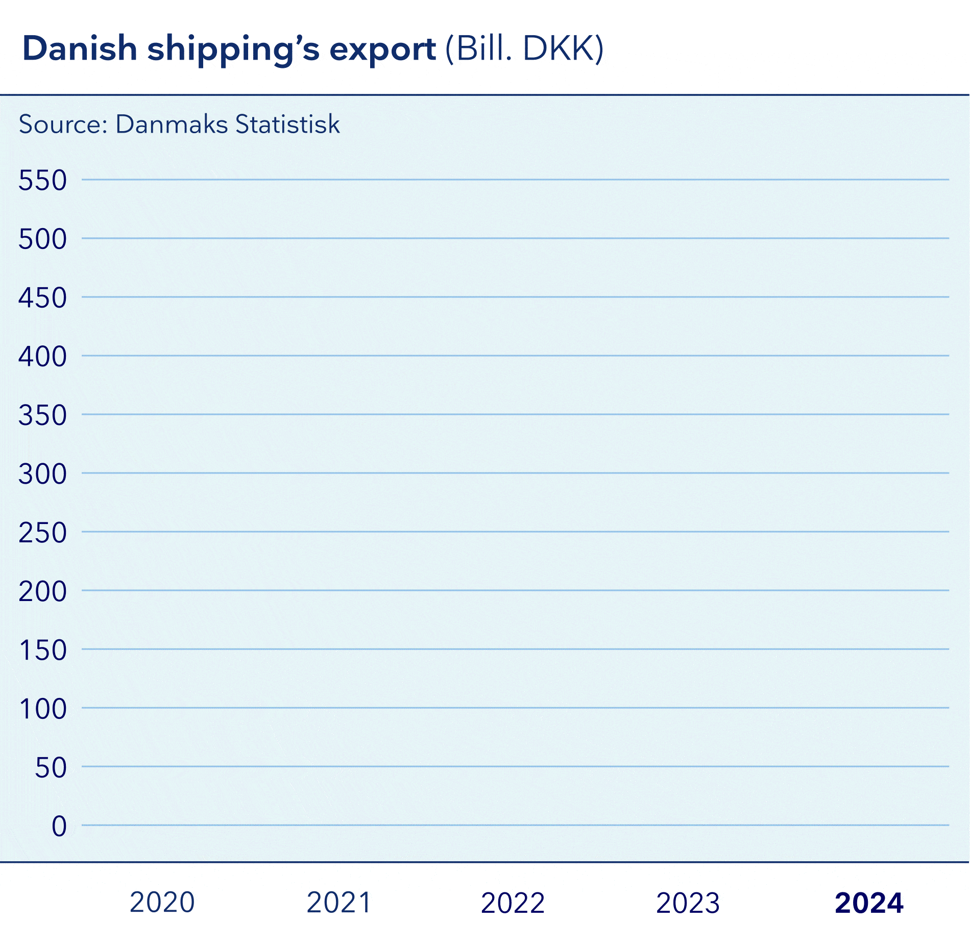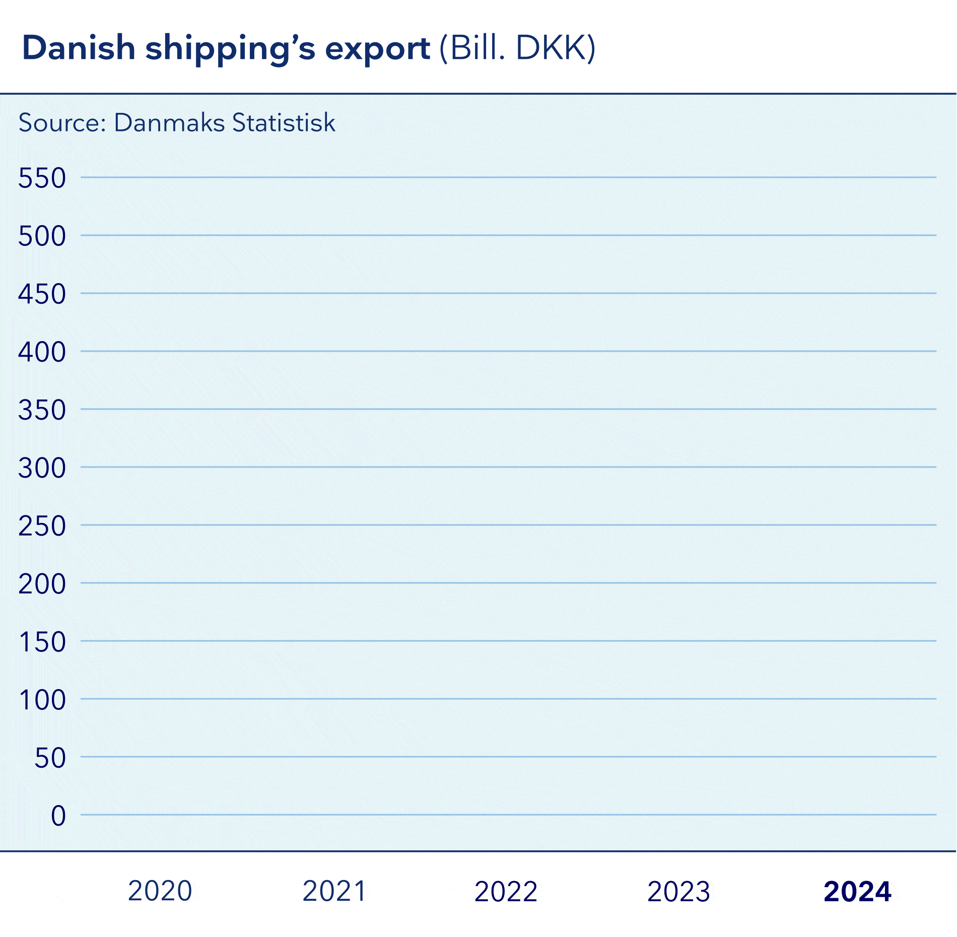 Shipping is Denmark's biggest export industry. In 2024 the export amounted to 383,5 billion Dkk.