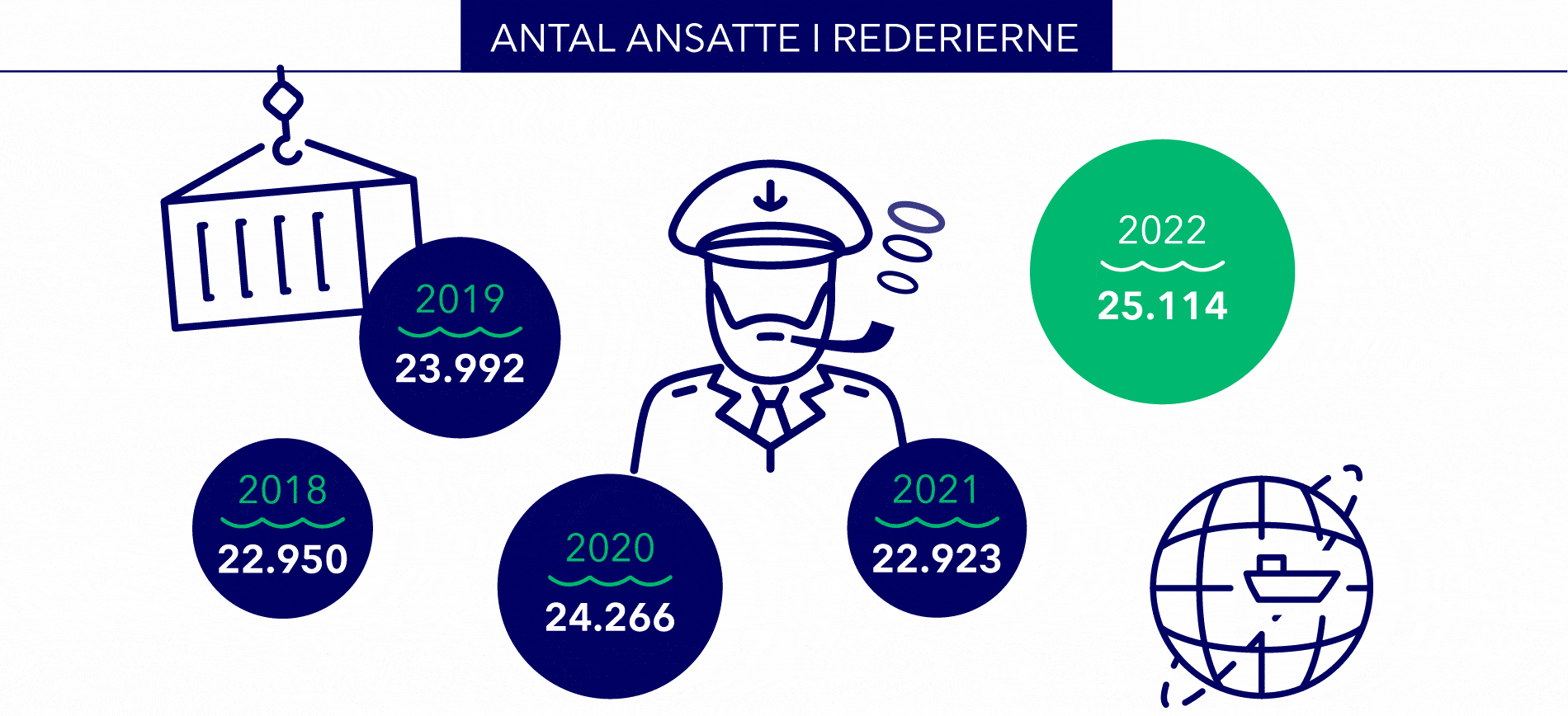 Antal ansatte i skibsfarten år for år