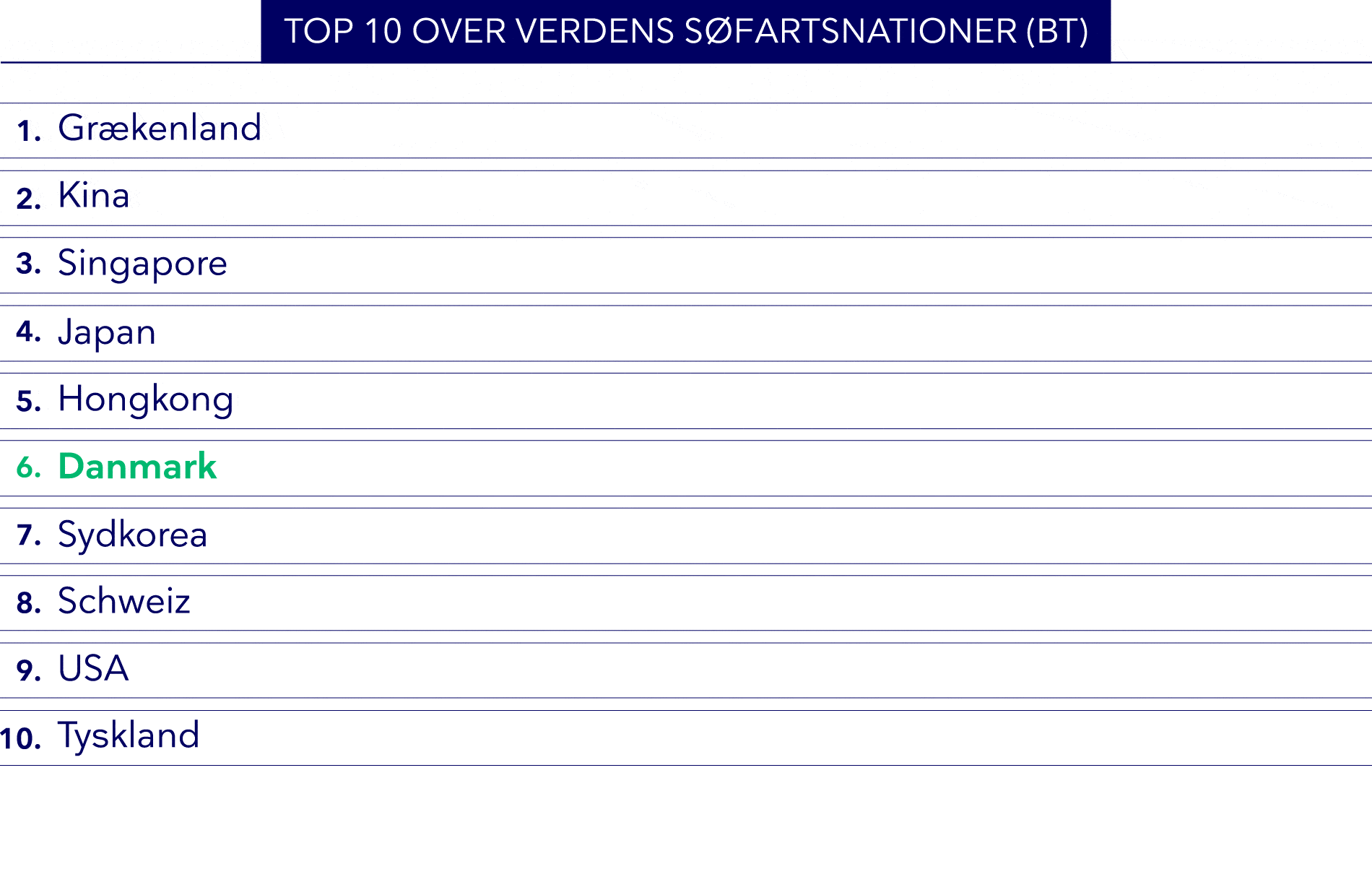 Målt på opereret tonnage ligger Danmark i topti over verdens største søfartsnationer.