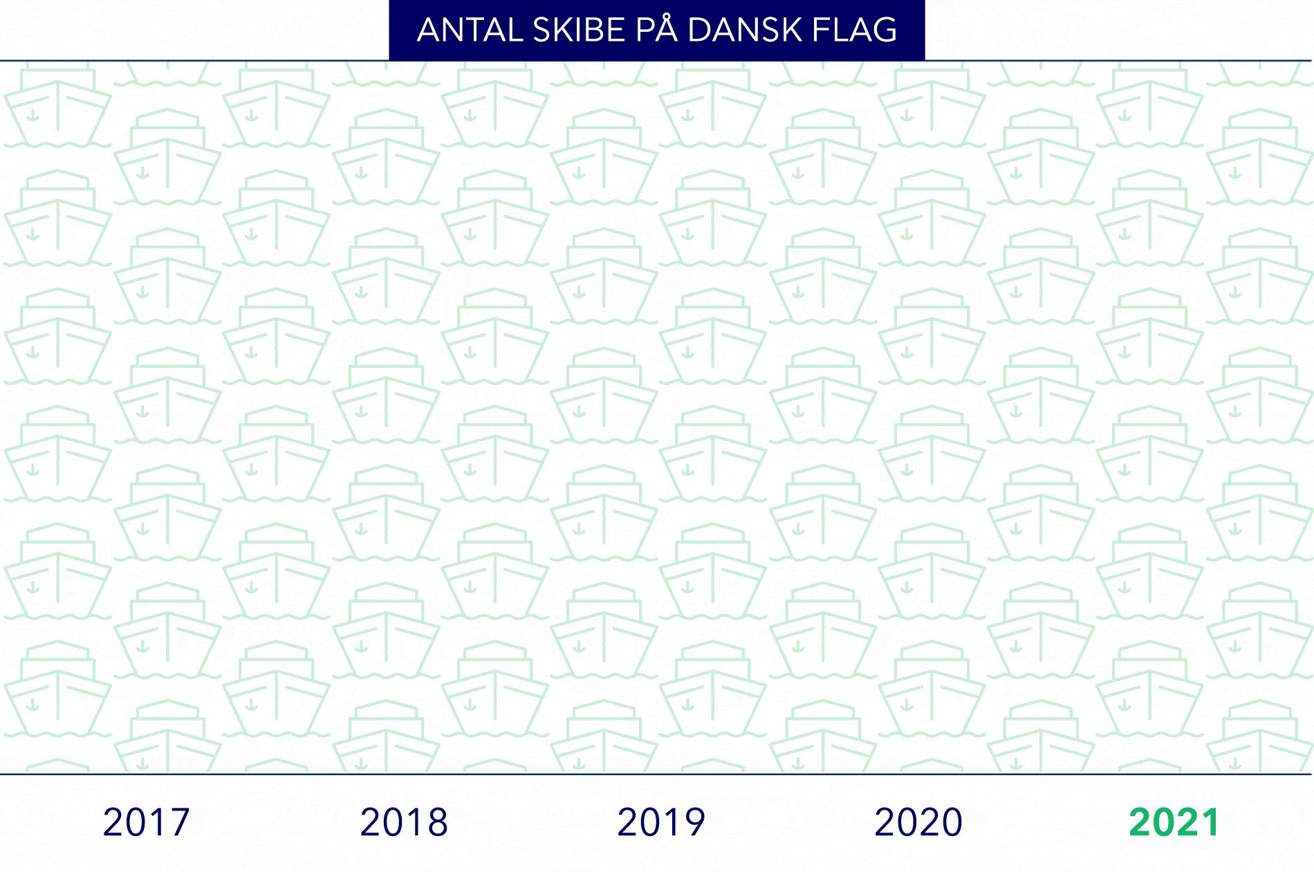 779 skibe sejlede ved årsskiftet 2021/2022 under Dannebrog. Det er 15 skibe mere end året før og det højeste antal nogensinde. Samtidig vokser vores opererede tonnage, så vi fortsat er placeret i top-10 over verdens største søfartsnationer. Det kan vi godt tillade os at være stolte af.